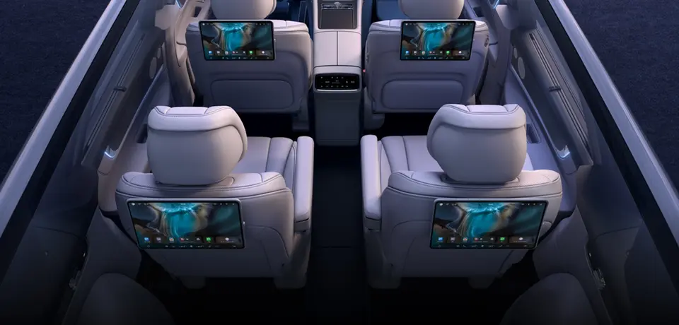 The passenger screen features independent accounts and control permissions, allowing for personalized entertainment without distractions.